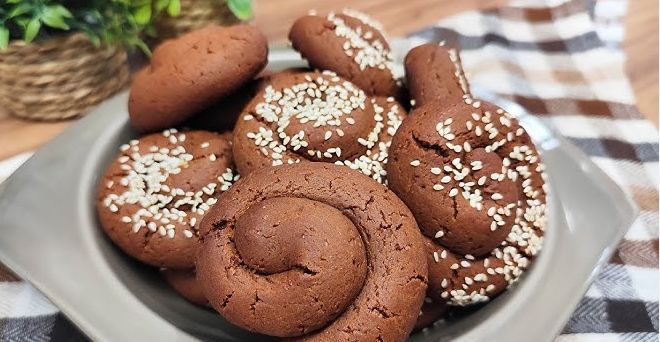 Un peu de fioriture… Des raisins secs peuvent également être ajoutés au mélange. Les biscuits au moût peuvent être croustillants ou moelleux. En général, plus la proportion de farine dans les ingrédients est élevée, plus les biscuits deviennent fermes et croustillants. Je les aime ainsi car je n’aime pas qu’ils me collent aux dents. Ceci dit, la tradition culinaire veut qu’il ne soient pas trop cuits. Pour qu’ils restent tendres, ils sont cuits couverts au four d’une feuille d’alu afin de piéger la vapeur dans le plat. Lorsqu’ils sont sortis du four, ils sont tendres et restent ainsi même lorsqu’ils refroidissent. Avant de les mettre au four, vous pouvez saupoudrer les biscuits avec du sésame blanc (facutatif). En Grèce, les biscuits sont servis avec du café, du thé ou du lait.