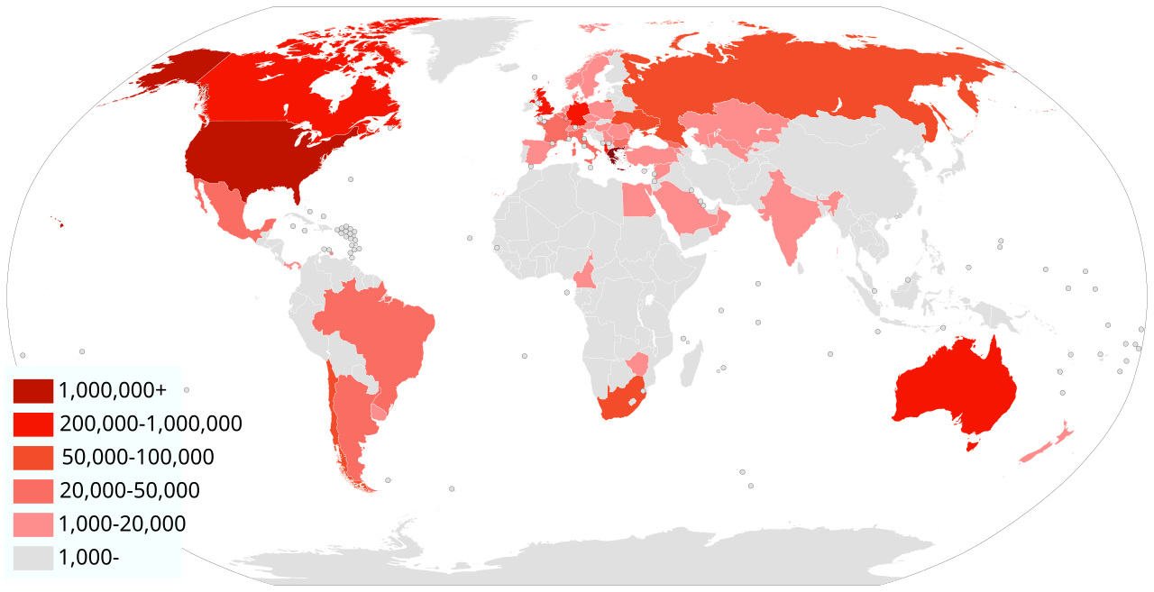 La diaspora grecque moderne se trouve principalement en Amérique et en Australie. 10 des 17 millions de Grecs vivent en Grèce.