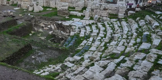 Smyrne romaine et son théâtre à voir. En 133 av. J.C., quand le dernier roi attalien, Attale III, est mort sans héritier, son royaume passa aux Romains. La cité devint rapidement province romaine d’Asie, avec Pergame comme capitale. Smyrne rivalisait avec la belle cité d’Éphèse. La cité a été reconstruite après le tremblement de terre de 178 après J.C. par l’empereur romain Marc Aurèle. Cet empereur romain a ajouté des colonnes corinthiennes lors de la reconstruction de l’Agora. Quant au site romain, je devine le pourtour du théâtre tout en marbre situé sur le côté nord. Il y a encore des fouilles car le site romain était grandiose !