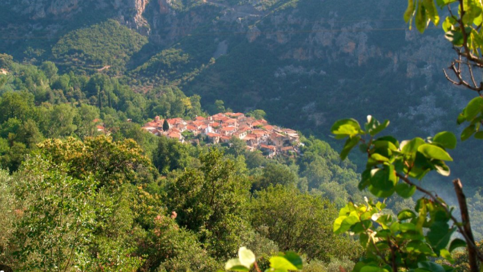 Le village de Sitaina. Le dernier jour, nous décidons de passer notre journée dans le village de Sitaine à une dizainde de kilomètres de Platanos. Ce village en amphithéâtre est entouré d’une forêt de sapins et de pins. À côté du village coule un affluent de la rivière Vrassiatis. En raison ce cours d’eau, de nombreuses sources publiques et moulin à eau. Nous découvrons des maisons en pierre, des ruelles pavées, la coexistence de différentes espèces de végétation (platanes, pins, châtaigniers, poiriers, cerisiers, noyers) favorisant le climat particulier de la région. Dans le village de Sitaina, un ravin verdoyant divise le village en deux parties, formant le canyon de Loulounga. En fin de journée, nous retournons à Karyès pour préparer notre affaire pour rentrer chez nous le lendemain.