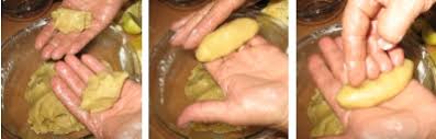 On les met directement sur une plaque qui a été préalablement couverte d’un papier anticollant. Laissez-les au four une 1/2 heure à 180o C (jusqu’a ce qu’ils aient une belle couleur brune claire).